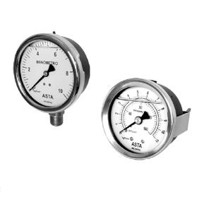 Manômetros de construção robusta, com mecanismo reforçado e recursos para ajuste. Com a caixa estanque, pode ser enchida com líquido amortecedor (glicerina ou silicone). Adaptam-se especialmente às instalações submetidas a vibrações ou pulsações da linha quando preenchida com glicerina.