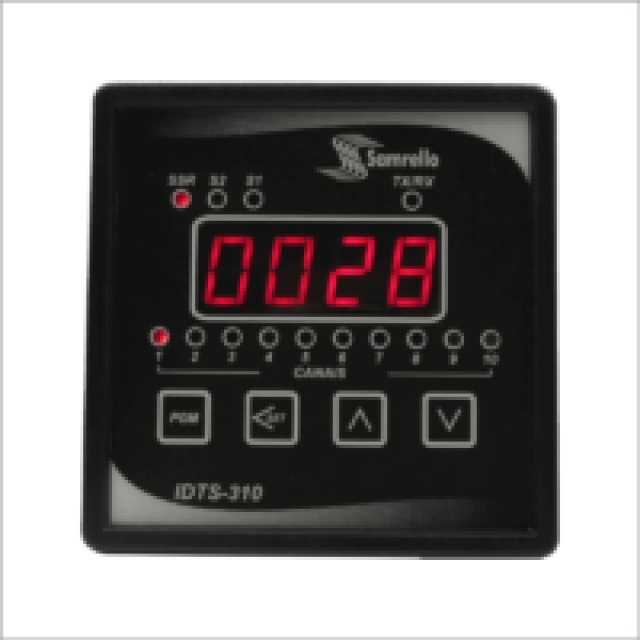 Os Indicadores de temperatura Multi ponto da Série IDTS-310 indicam a temperatura desejada de até 10 Canais com Sensores do Tipo Termopares J, K, T ou termo resistências PT-100. O Canal de indicação pode ser alterado de maneira manual ou automática. Possuem 1 Saída SSR para Controle, e até 2 Saídas a Relé para Alarme. Podendo uma destas ser alterada para Controle ficando apenas 1 Relé de Alarme.